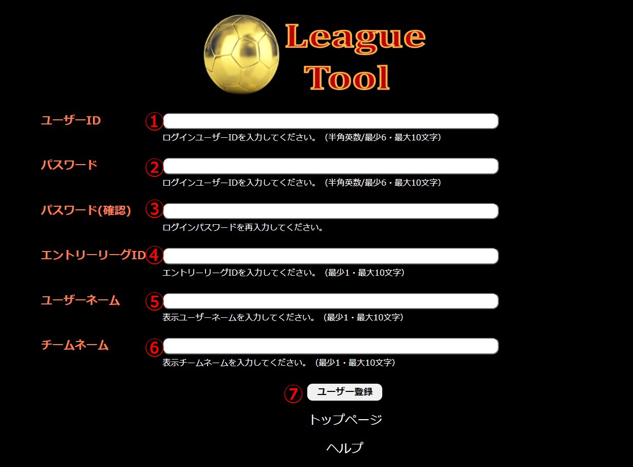 リーグ管理に必要なリーグIDを登録します。リーグ設立後メンバー登録を行う際の必須入力項目になるため メモ等に必ず控えてください。リーグIDは登録後の変更は出来ません。 入力形式は半角英数最小6文字、最大10文字になります。