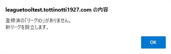 新規リーグ設立に使用します。「①リーグ新規登録リンク」を押下すると下記画面に遷移する。